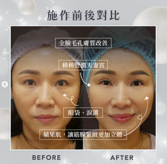 (備註:任何醫美療程皆會受到個人體質、生活習慣影響而產生不同治療效果與風險,有關醫美療程的適應症、禁忌症、副作用等問題,均以醫師諮詢說明,仿單記載為準,建議療程前選擇合格診所,並與專業醫師溝通諮詢,規劃合適療程以減少期望上的落差。)