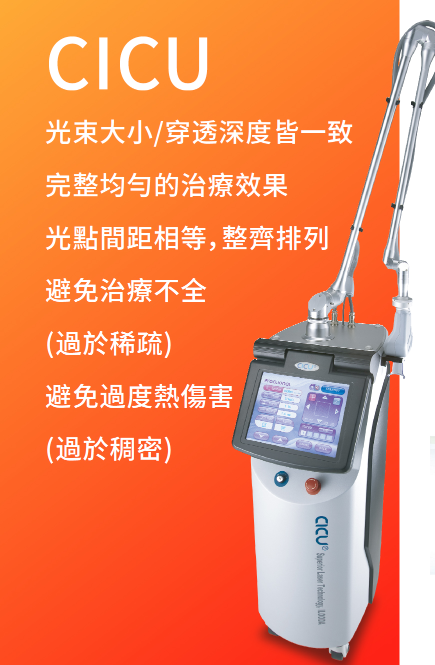 磨皮/除痣/除肉芽作者: user / 16 12 月, 2024 什麼是飛梭雷射? 飛梭雷射是現代醫學上被公認為對深入真皮層(dermis)肌膚確實有療效的技術,深度溫熱能造成肌膚深層的纖維母細胞與膠原蛋白增生與重組,是治療痘疤與毛孔粗大的首選!飛梭雷射的治療原理,是將雷射光束以細微點狀輸出,結合分段式多次療程,減少皮膚在單次療程時受到的破壞。由於飛梭雷射的雷射光束的直徑都很小,因此可以打到深層真皮層,在一般情況下也不會造成無法修復的凹洞,非常適合處理深部的病灶結構,可是每次只能破壞部份的組織,若只有一次的治療,外觀變化並不大,建議採取多次處理。新一代CICU CO2魔顏飛梭雷射!”新一代CICU CO2魔顏飛梭雷射“ ,結合CO2二氧化碳雷射、傳統單點雷射與飛梭掃描功能,可釋放比髮絲還細的雷射光束,用點狀汽化組織及溫和的熱能,產生微米創傷(MNZ),保留大面積的正常皮膚,刺激膠原蛋白重組,提高皮膚自我修護能力,大幅改善疤痕、皺紋,使肌膚回春,並達到換膚的功效。由於每次只針對約 6-20% 肌膚進行深度加熱治療,因此一個完整療程通常需要 5-6 次治療 —— 這就是「分段式治療」概念,層層漸進式的破壞老廢肌膚,再重組,傷口小、修復期短。 CICU CO2 魔顏飛梭治療流程 臉部徹底清潔(卸妝、洗臉)拍攝術前照敷麻醉藥膏戴上護目鏡進行雷射治療術後修護生長因子導入接受衛教並預約回診飛梭雷射治療範圍痘疤、燒燙傷疤、術後疤老化肌膚、色素斑病變、雀斑、黝黑型肌膚粗大毛孔、皺紋、鬆弛、妊娠紋任何肌膚之更新再生、臉部、頸部煥膚療程次數1 次|約可改善20-30%3次|約可改善70%5次|約可改善90%每次治療間隔需至少3-4週。